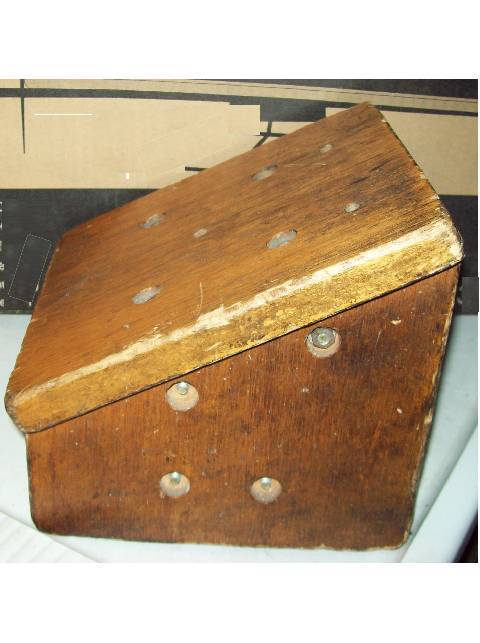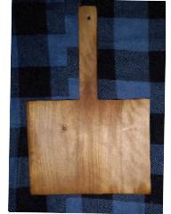 These are good dimensions of a self-applied paddle for normal sized persons: the wood should be hardwood (oak, mahogany, birch). A good thickness is thirteen sixteenths of an inch. The width is 7¾ inches. The length is 6 3/32 inches. From the middle of one of the 7 3/4-inch sides rises a handle an inch and an eighth wide, and 5 5/8 inches long. So the shape is generally that of an oblong breadboard with a handle. If you stood it up on end with the handle stuck up into the air, and sawed it off in the middle, horizontally, it would look like the picture above.