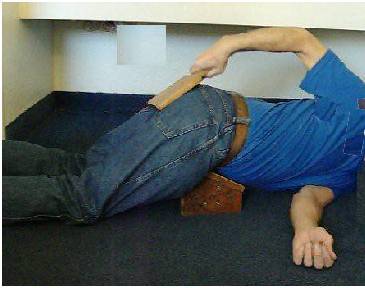 Assuming you are right-handed, rest the back part of the left upper arm from the shoulder to the elbow on the floor, twist around slightly and grip the self-applied paddle with the right hand. Grasp the back of the meditation seat with your left hand. Place the paddle on the bottom, right where the spank will land. Now raise the paddle in the air and give the buns an arm-swing, wrist-action smack!, right on the sweet spot. Then give them another. Around five units should bring you to the punishment point, but this is subjective. That it is actually at that point should be a matter of honor. So also with each punishment unit. There should never be more than seven units in total. Remember that the paddle does more damage than you think -- you will become aware of that later in the day and week. One of the ways that spanking discipline works is that we remember it when we sit down. There is a natural tendency to repress punishment, and these constant reminders are really very corrective.